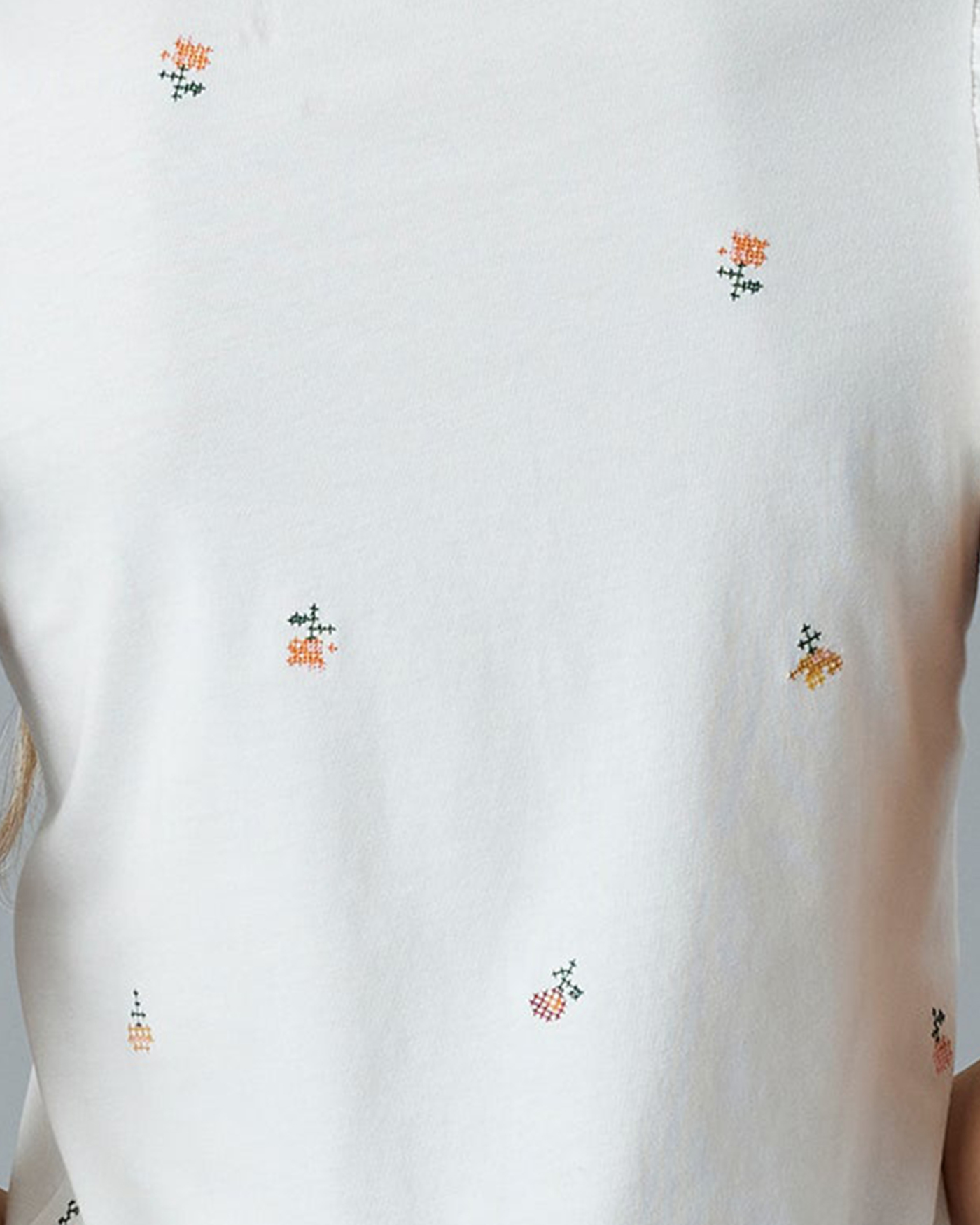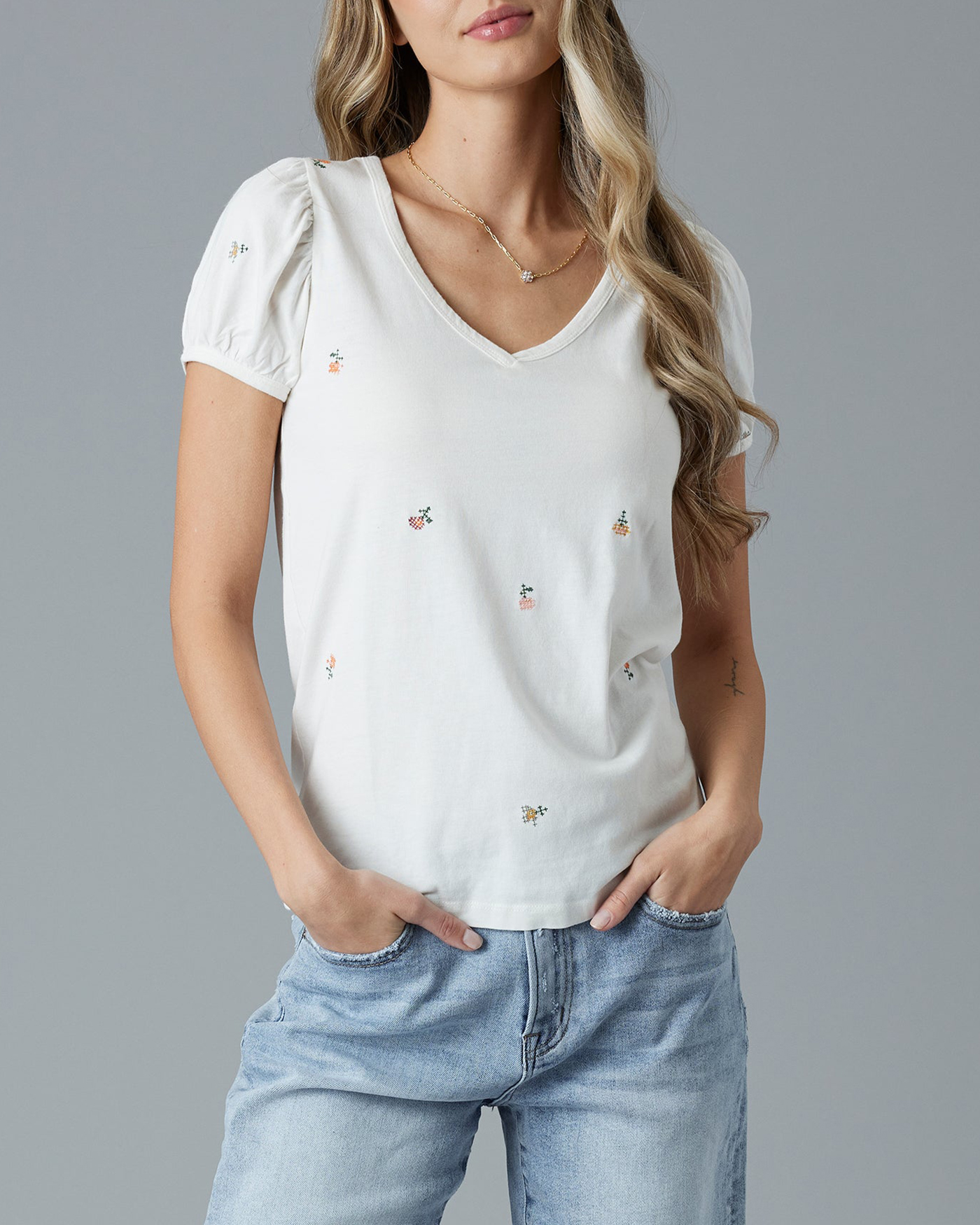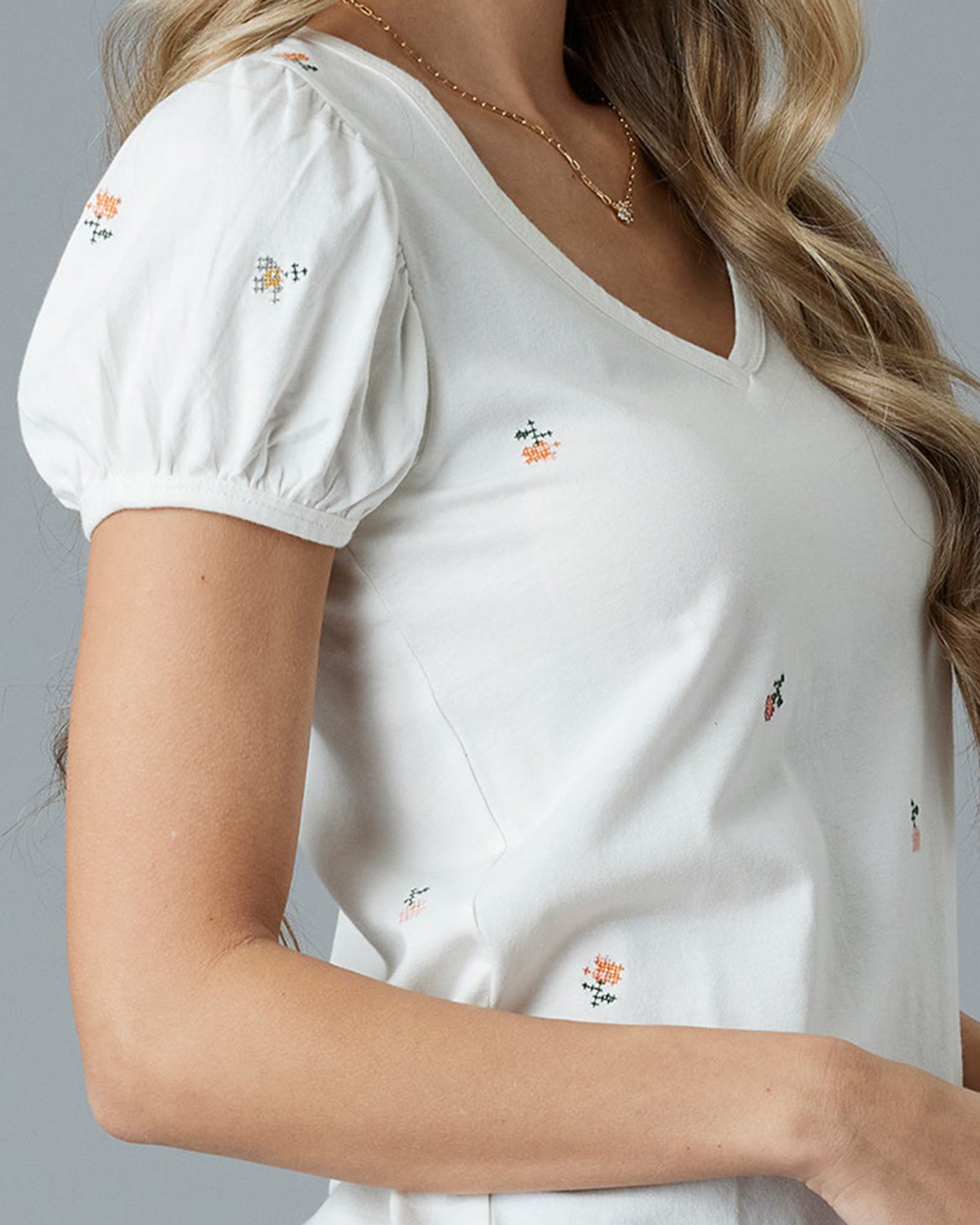 Charming V-Neck T-Shirt With Small Embroidered Motifs