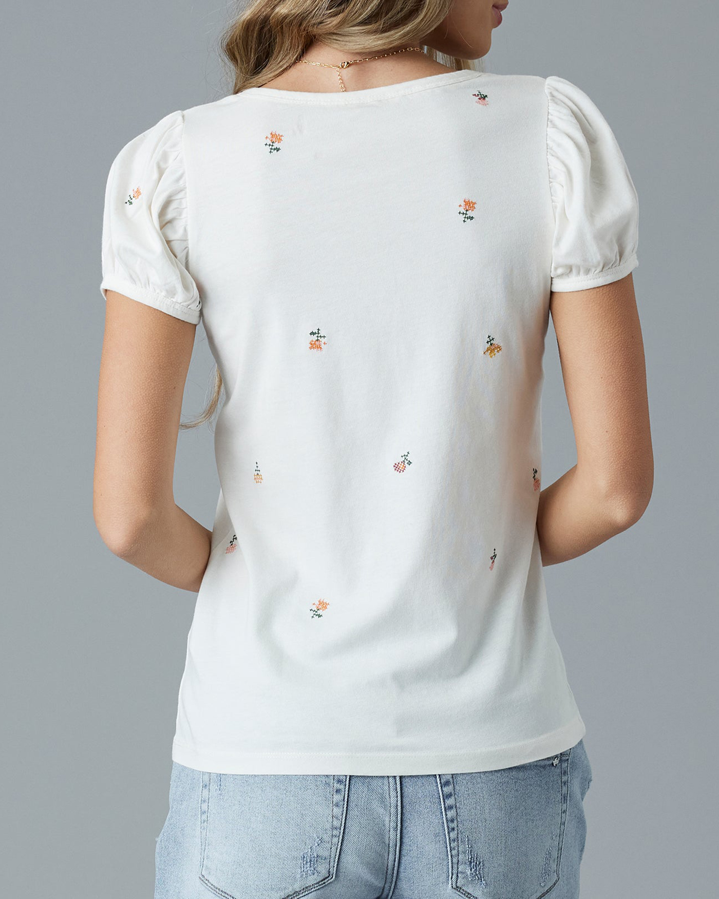 Charming V-Neck T-Shirt With Small Embroidered Motifs 486877