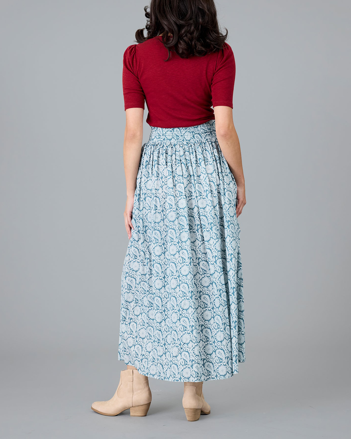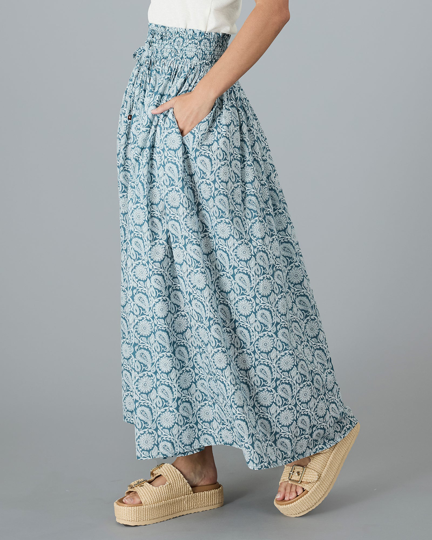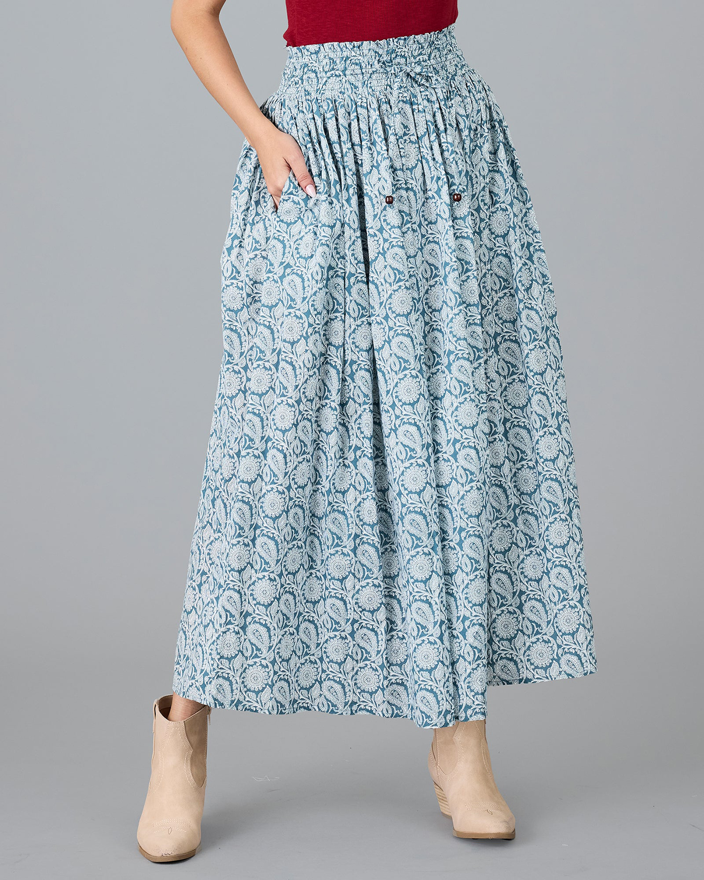 Light Blue Patterned Maxi Skirt