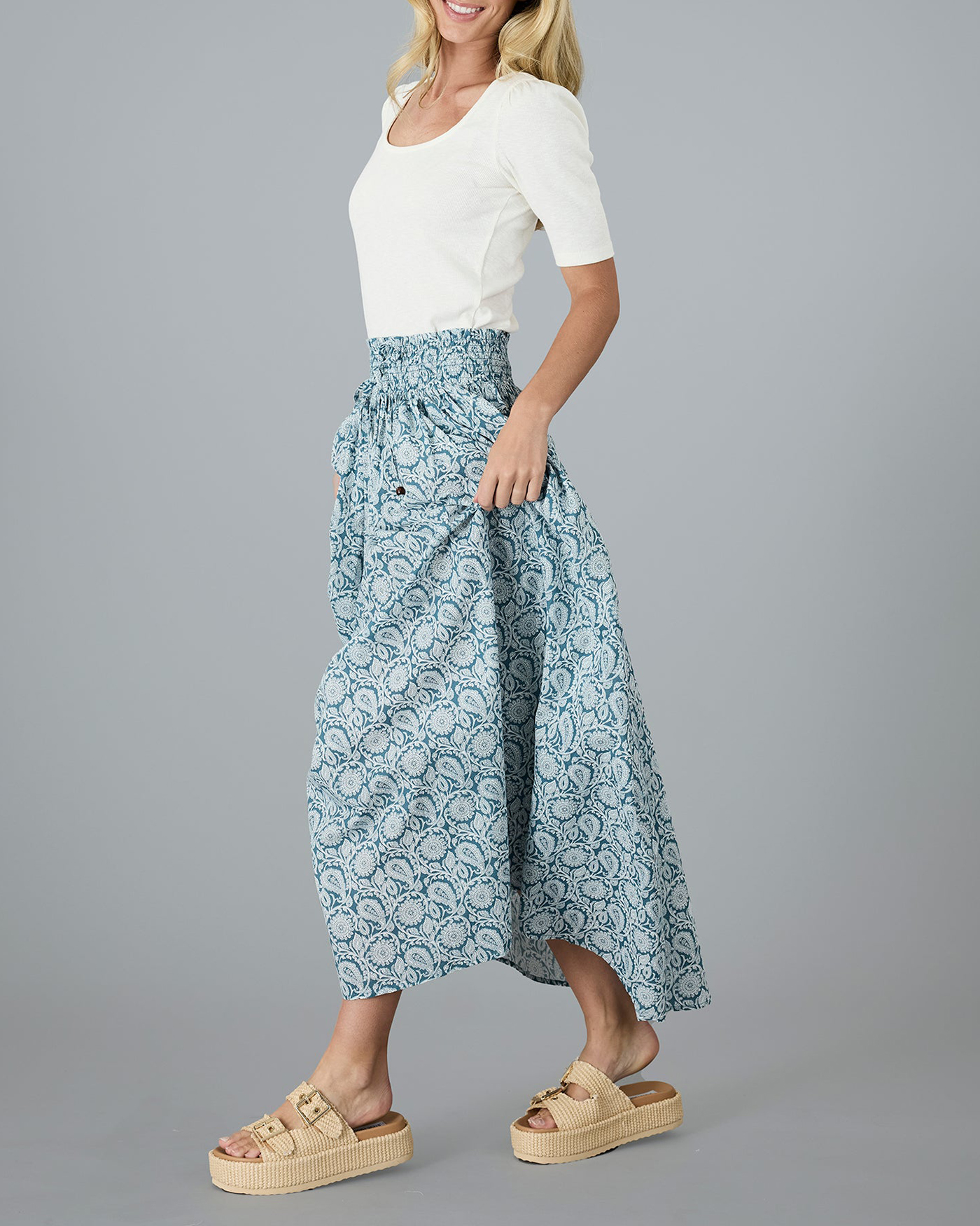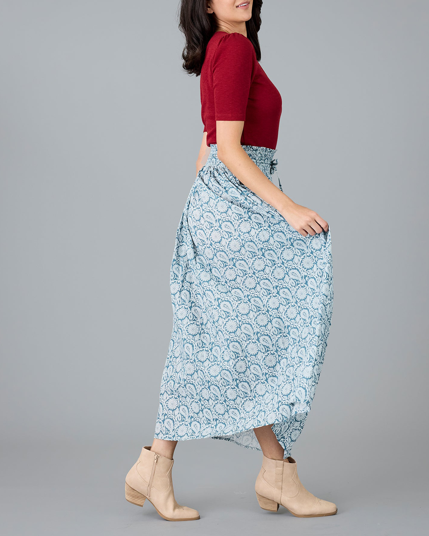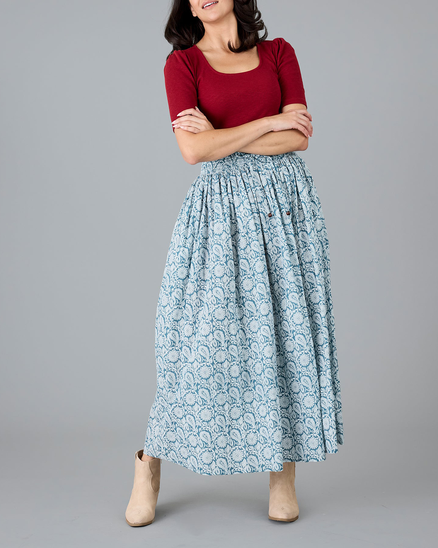 Light Blue Patterned Maxi Skirt