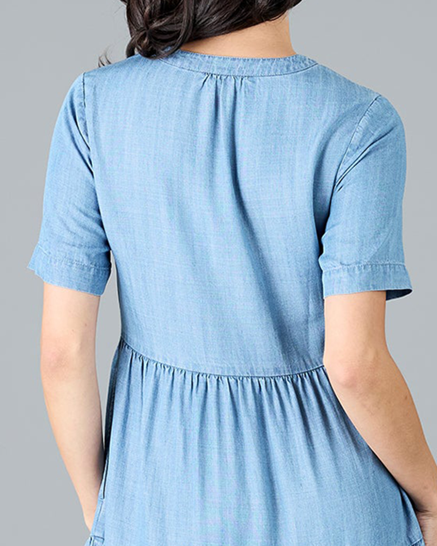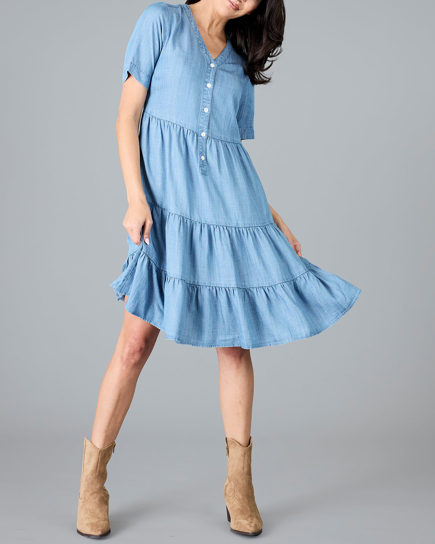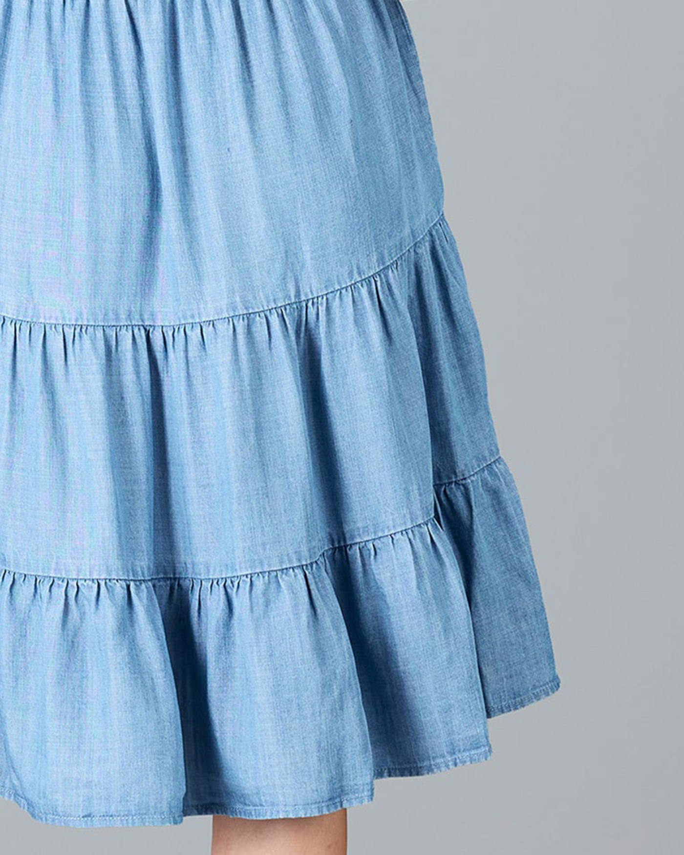 Medium Blue Wash Button Down Ruffled Dress