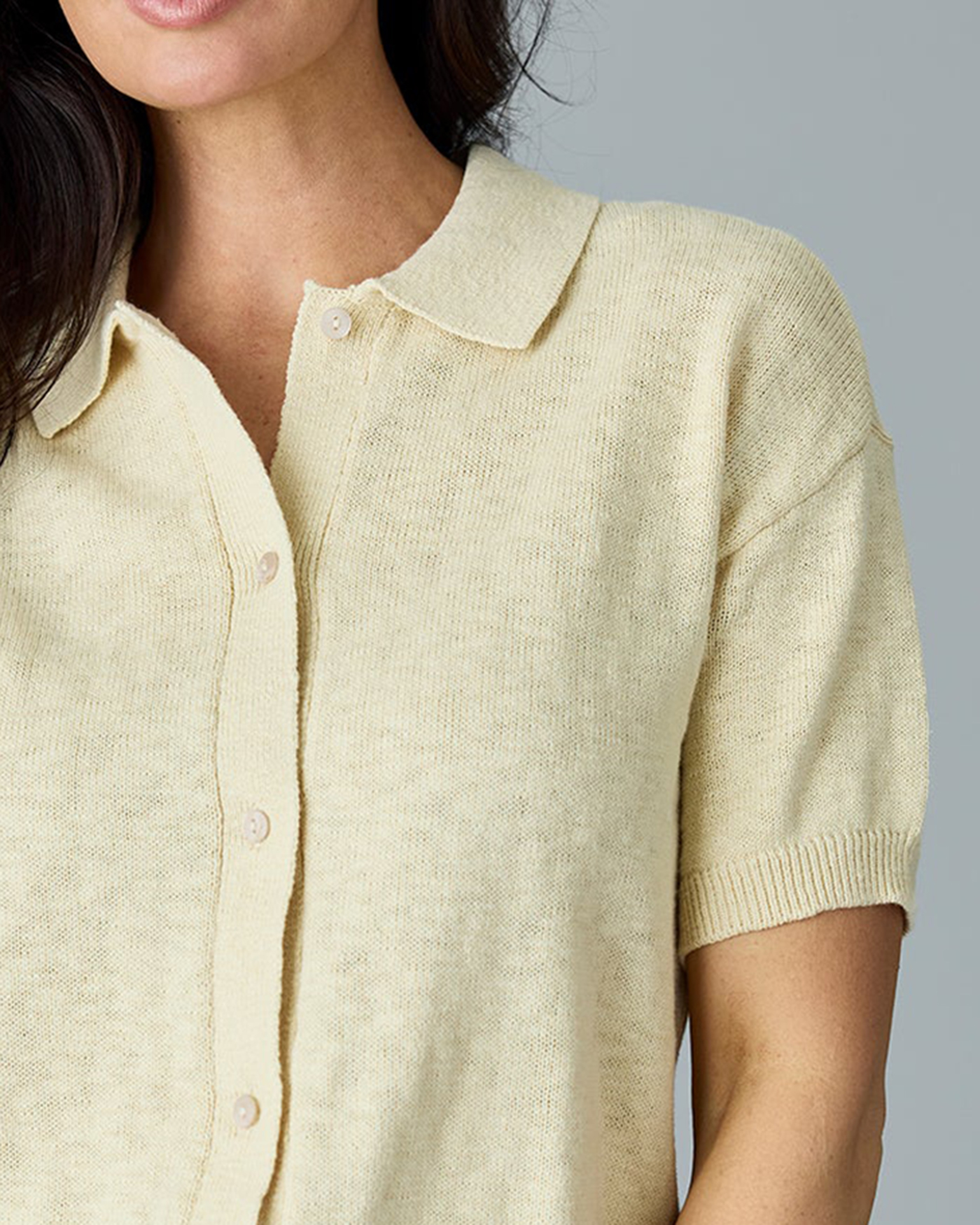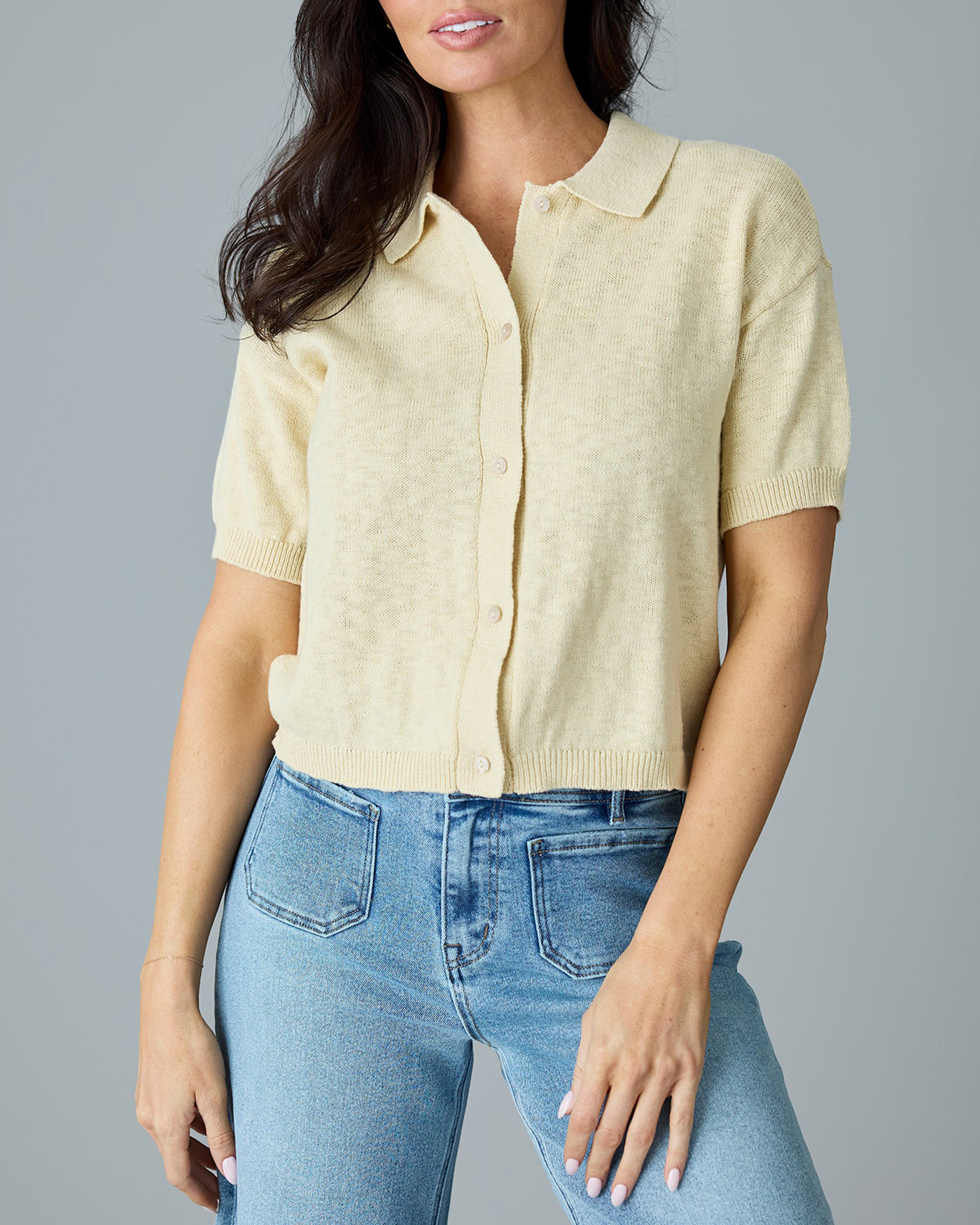 Short Sleeve Knit Button Up Top